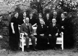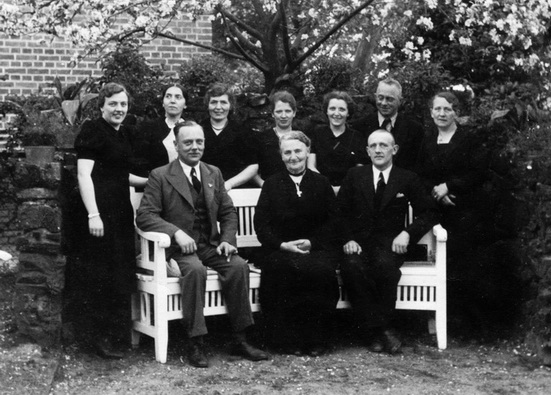 v.l.n.r.: stehend: Grete Schnermann - NN. Ostrick - Liesel Schnermann, geb. Schumacher- Hanny Schnermann, geb. Thobe - Käthe Schnermann, geb. Hartmann - Willy Steven, Liesbeth Steven, geb. Schnermann sitzend: Heinrich Schnermann - Anna Schnermann, geb. Ostrick - Franz Schnermann