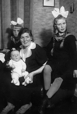 Liesel Schnermann, geb. Schumacher mit ihren Kindern (v.l.n.r.) Liesel, Heinrich, Hildegard